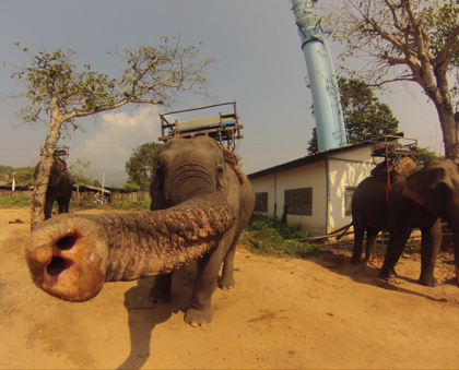 Nous arrivons ensuite au camp d'éléphant où nous pouvons nourrir les pachydermes avec des bananes et des cannes à sucre. On profite pour faire des photos plutôt drôles. Ensuite, nous grimpons sur notre éléphant qui nous promène pendant 30 minutes.