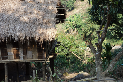 Après avoir bien sué, on arrive dans un village Lahu, ethnie montagnarde du nord. Nous sommes acceuillis par le rire des enfants qui jouent au "loup". Leurs maisons en bamboo sont adorables et sont même équipées pour certaines de pannaux solaires ! Ici, se mélangent adultes, enfants, poules, chiens, cochons, etc.